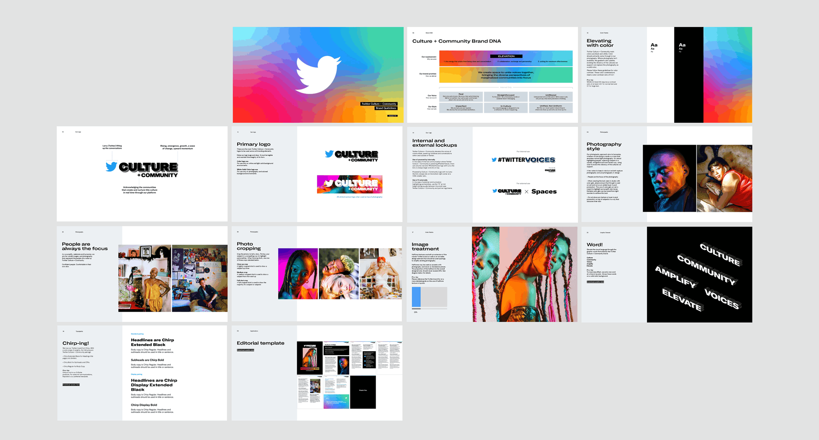 Rooted in Twitter’s existing brand system, the visual identity embraced layered forms, dynamic color, and expressive typography to reflect the depth and complexity of human connection. The resulting toolkit balanced consistency with flexibility, which allowed the program to evolve while maintaining a cohesive, recognizable presence.