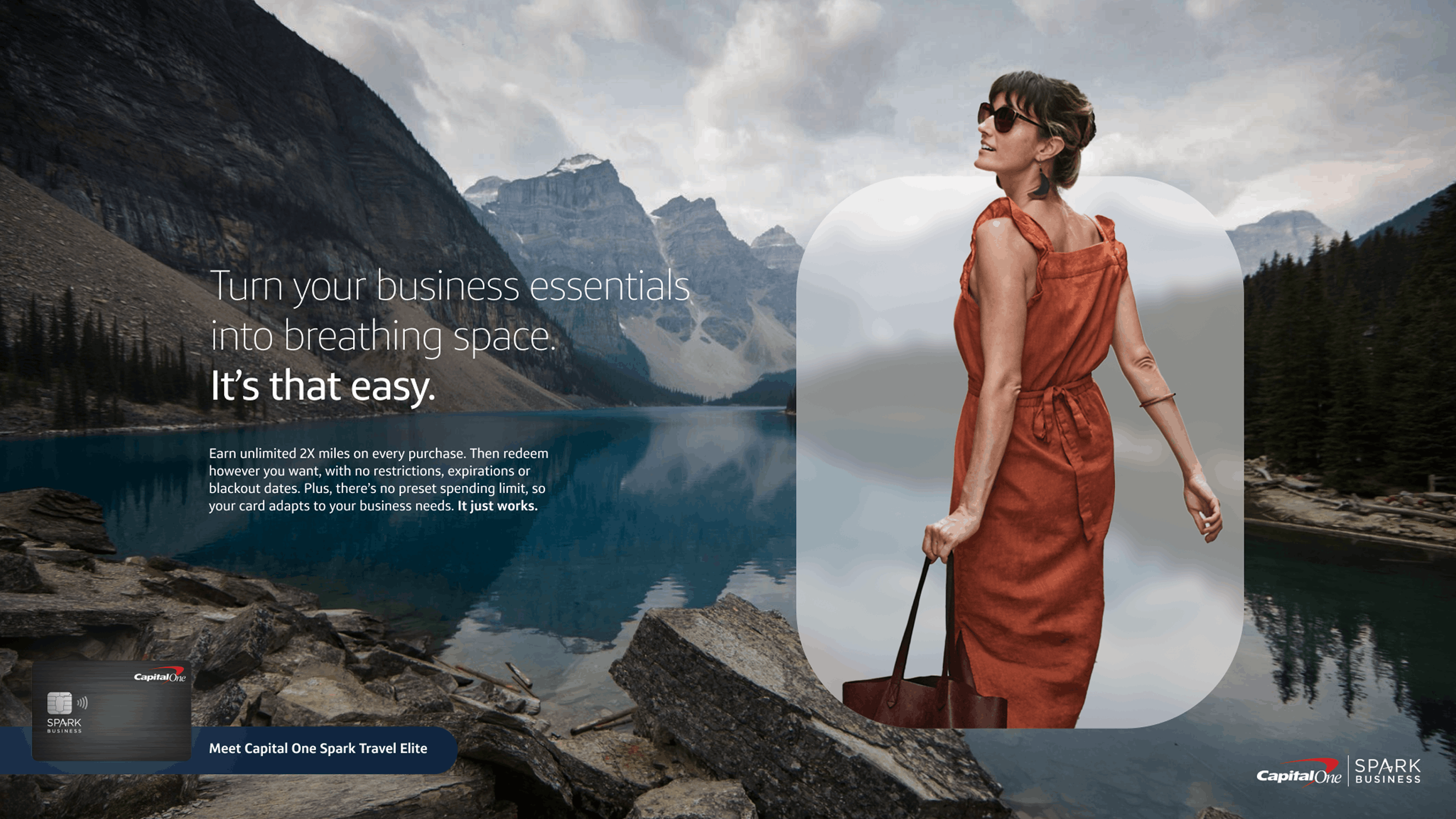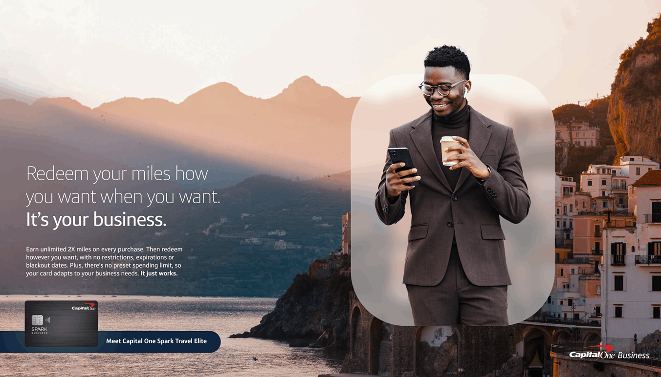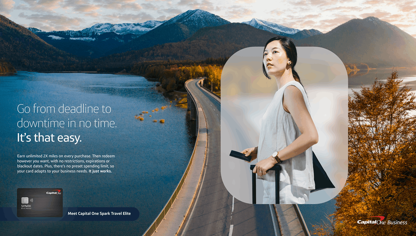 During my time as a contractor with Capital One, I had the opportunity to lead creative development for the launch of their newest upmarket offering: Spark Travel Elite. The challenge was to capture the attention of hybrid business travelers with a campaign that felt premium, seamless, and distinct—while still living comfortably within the Capital One brand.